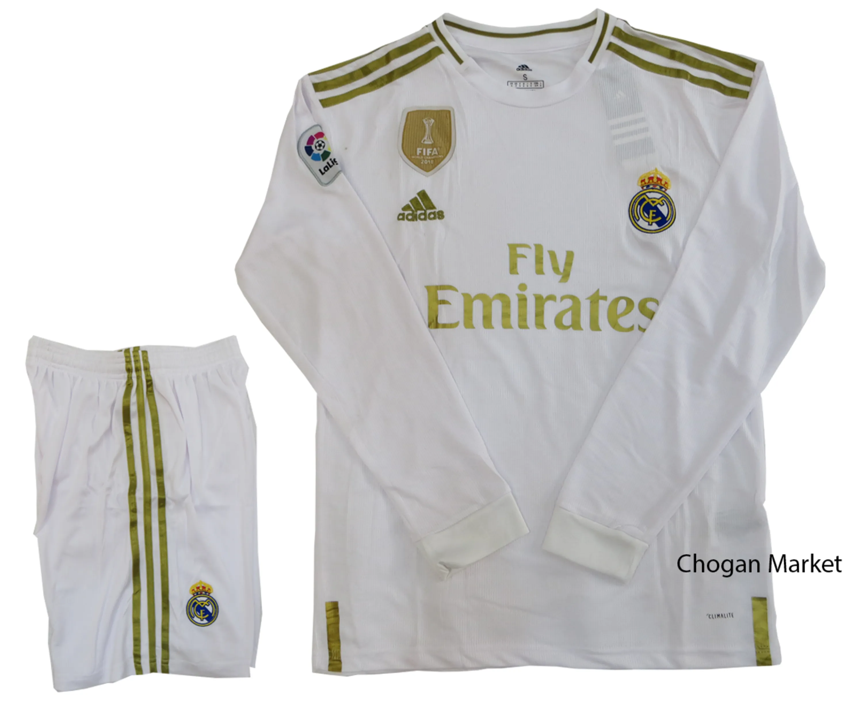 پیراهن و شورت اول رئال مادرید آستین بلند | همراه با چاپ دلخواه