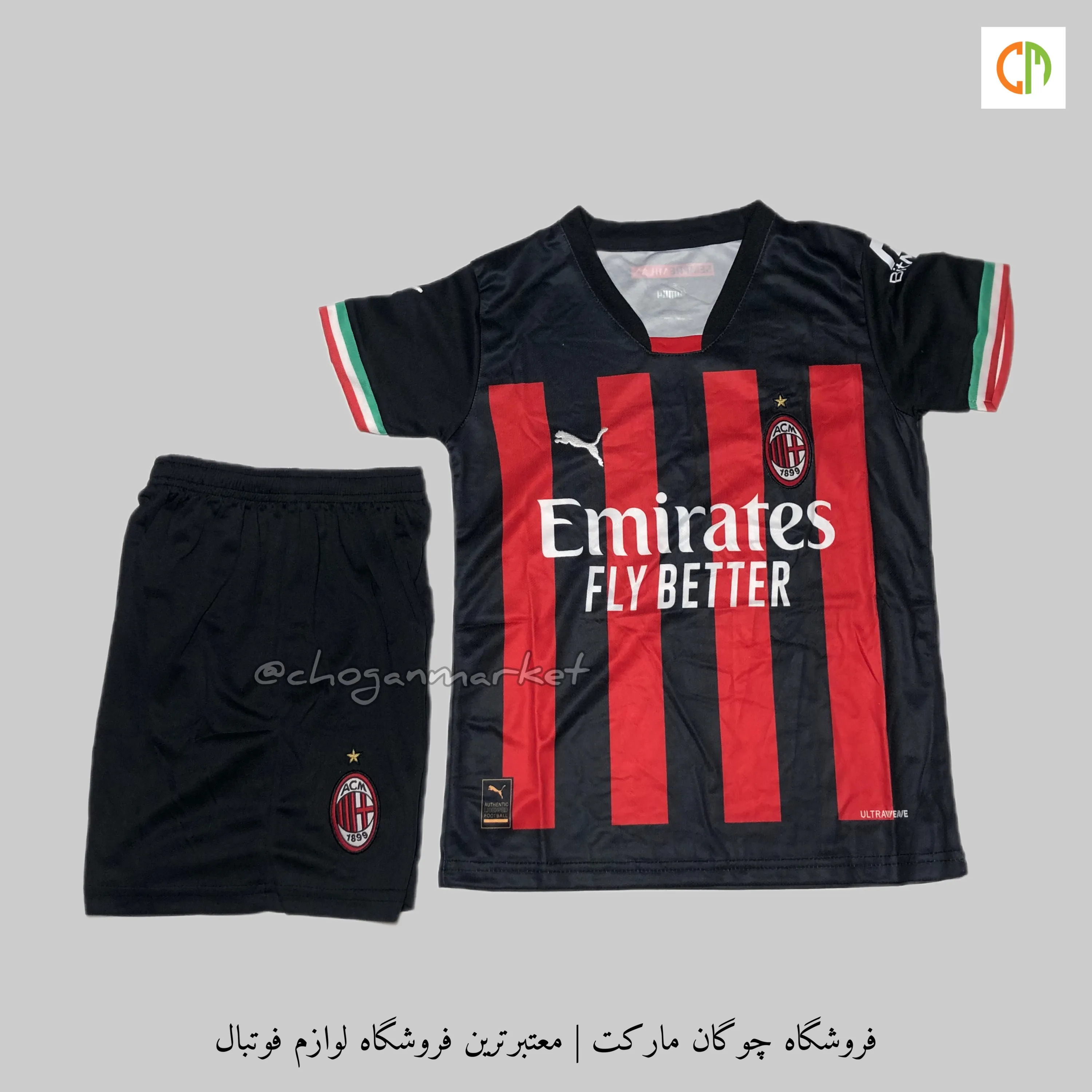 بالاترین کیفیت تایلندی پیرهن شورت بچه گانه هواداری اول آث میلان 2022/23 | زیر قیمت بازار به دلیل پخش عمده | از معتبرترین مغازه منیریه تهران با 32 سال سابقه فروش عمده و تک لوازم فوتبال