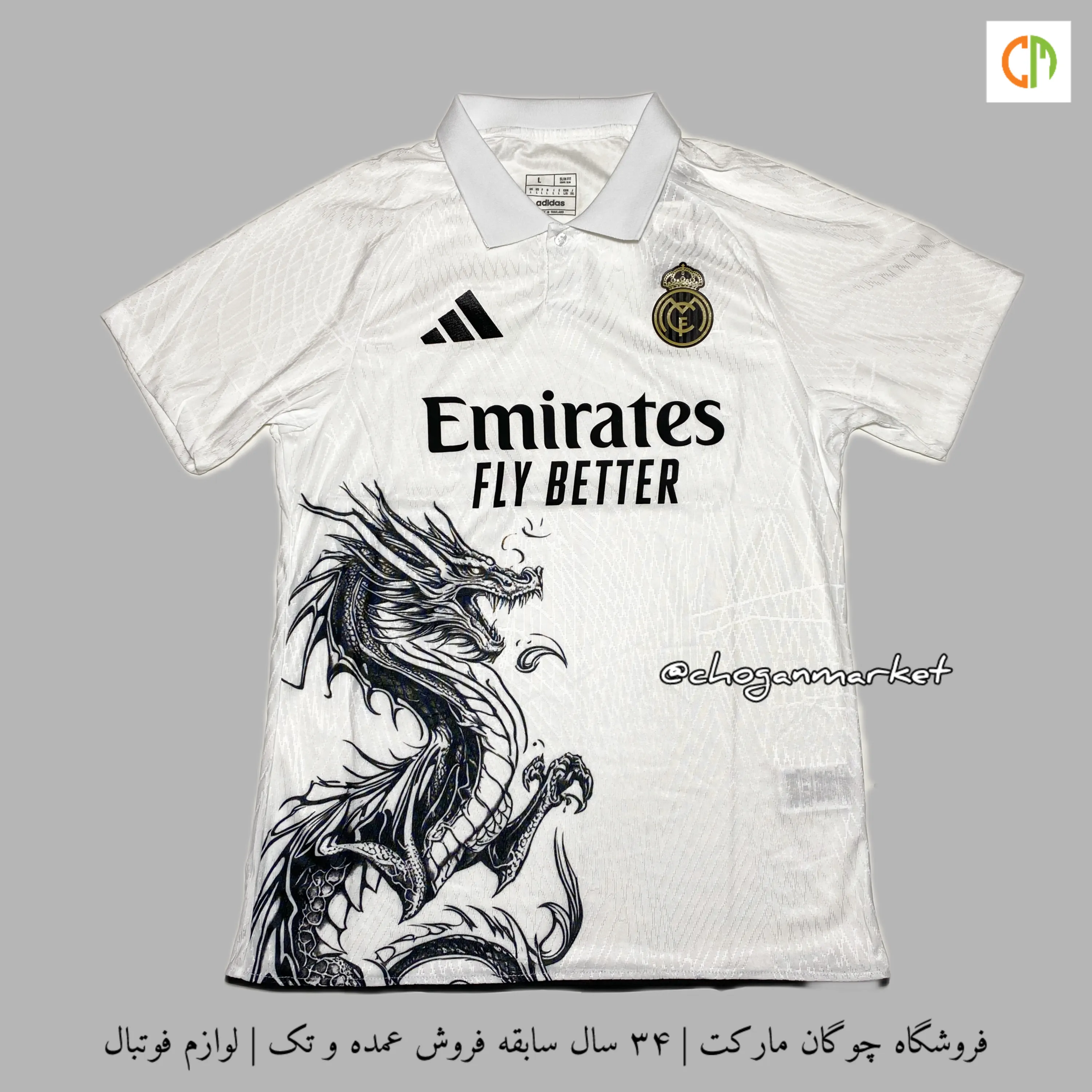 بالاترین کیفیت تایلندی تیشرت دراگون سفید رئال مادرید ورژن پلیری فصل 2025 | زیر قیمت بازار به دلیل پخش عمده | از معتبرترین مغازه منیریه تهران با 34 سال سابقه فروش عمده و تک لوازم فوتبال