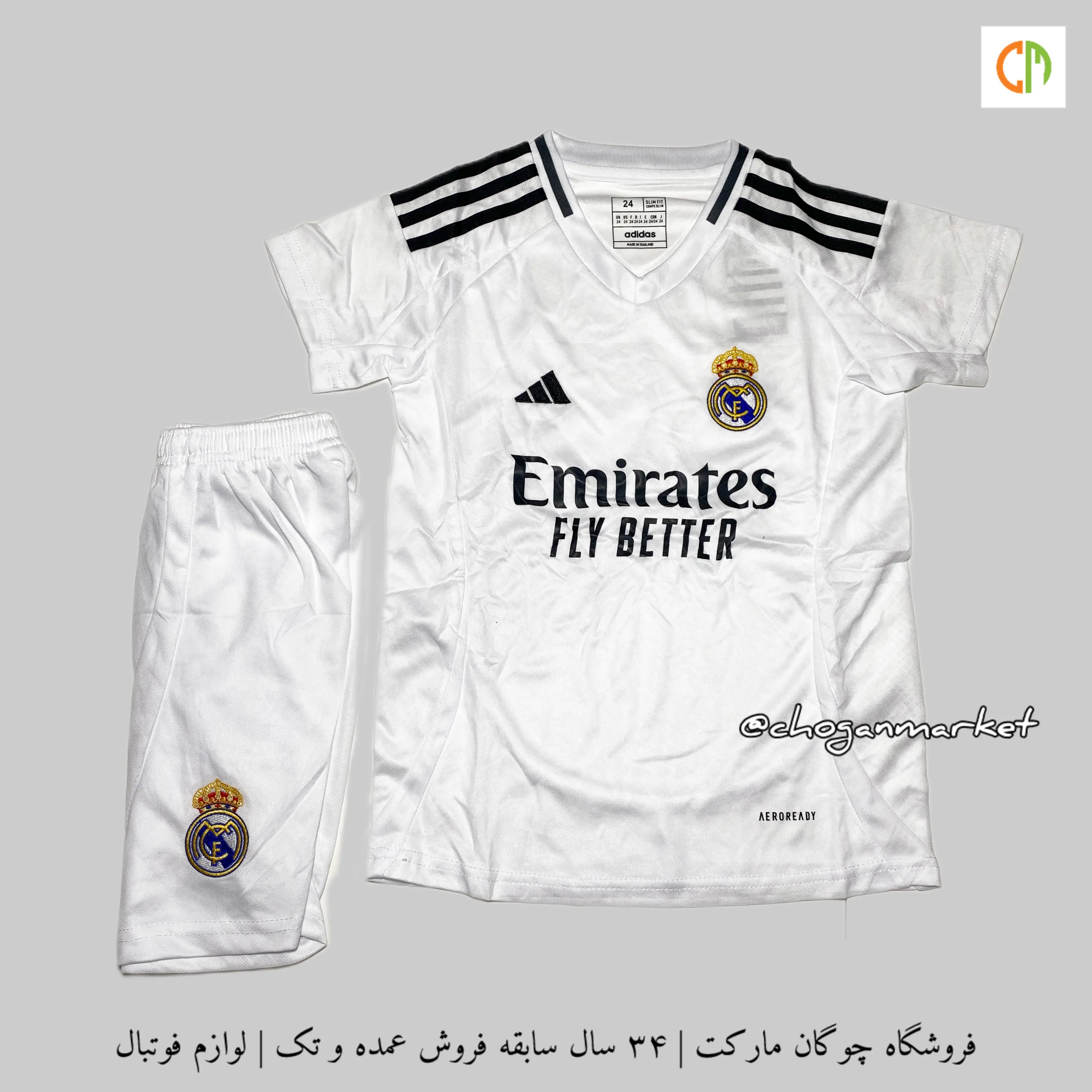 بالاترین کیفیت تایلندی کیت بچه گانه هواداری اول رئال مادرید 2024/25 | زیر قیمت بازار به دلیل پخش عمده | از معتبرترین مغازه منیریه تهران با 34 سال سابقه فروش عمده و تک لوازم فوتبال