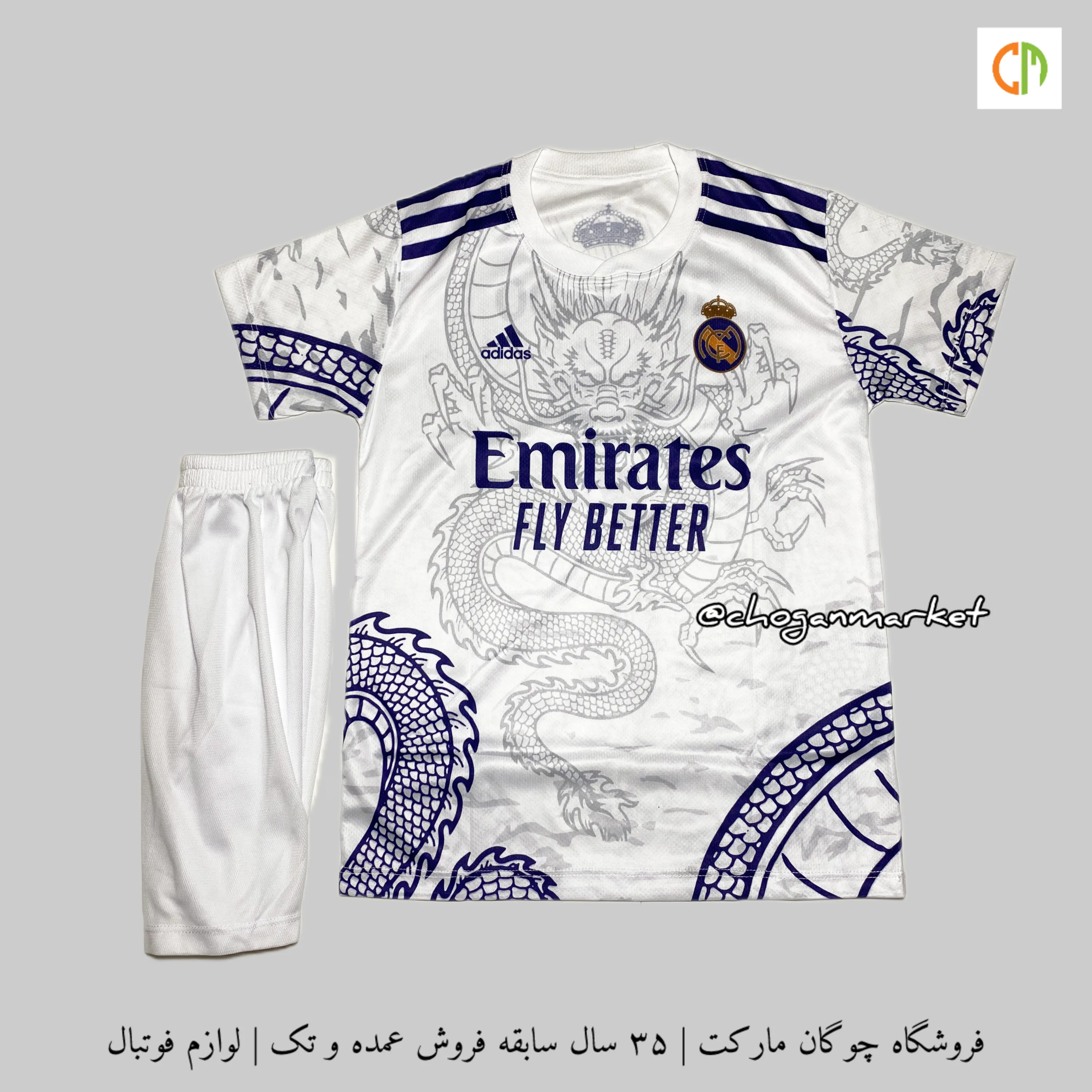 کیت پسرانه دراگون رئال مادرید با اسم و شماره 7 رونالدو | تولید ایران | از معتبرترین مغازه منیریه تهران با 35 سال سابقه فروش عمده و تک لوازم فوتبال