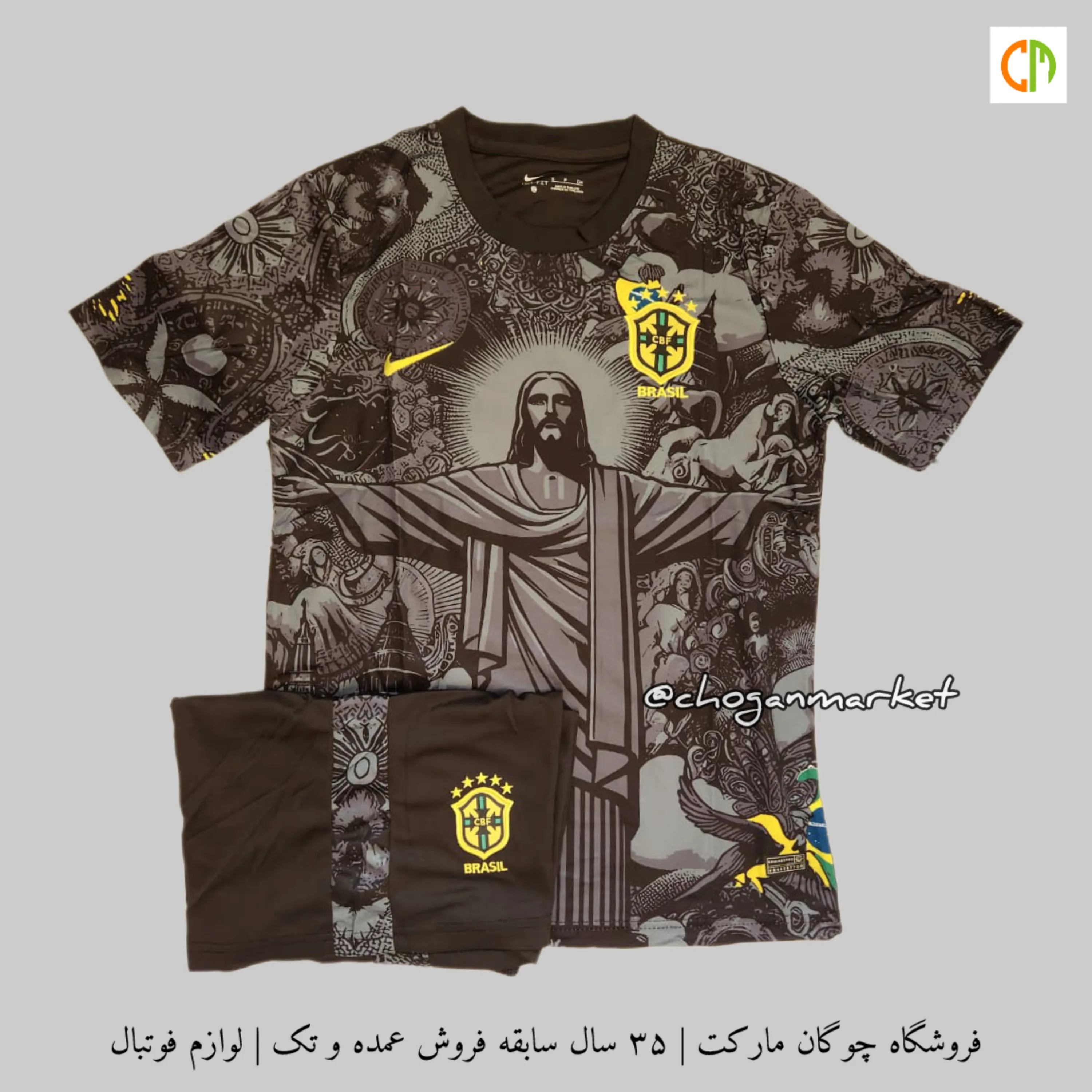 بالاترین کیفیت کیت برزیل 2025 (طرح مسیح) تایلندی درجه یک | زیر قیمت بازار به دلیل پخش عمده | از معتبرترین مغازه منیریه تهران با 35 سال سابقه فروش عمده و تک لوازم فوتبال