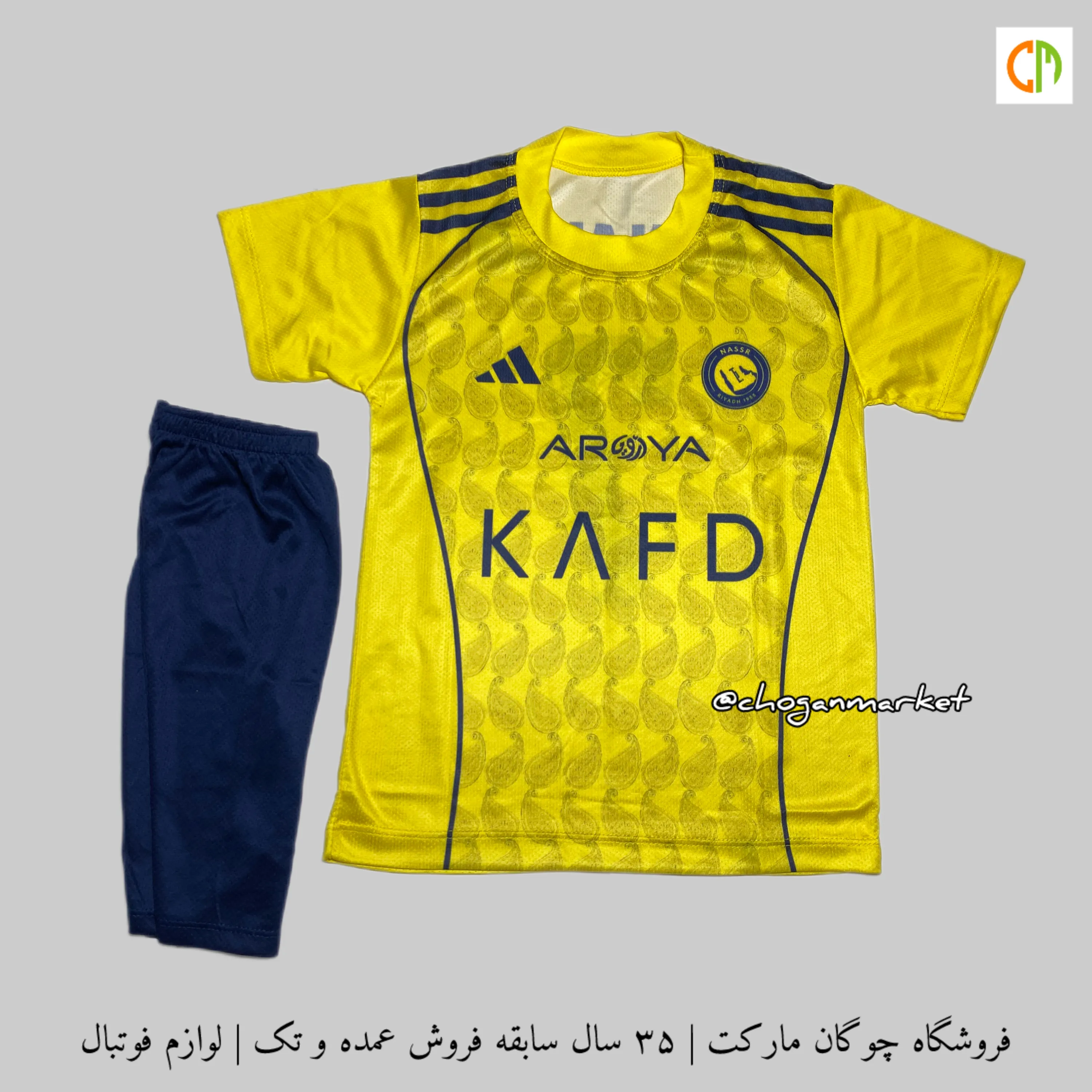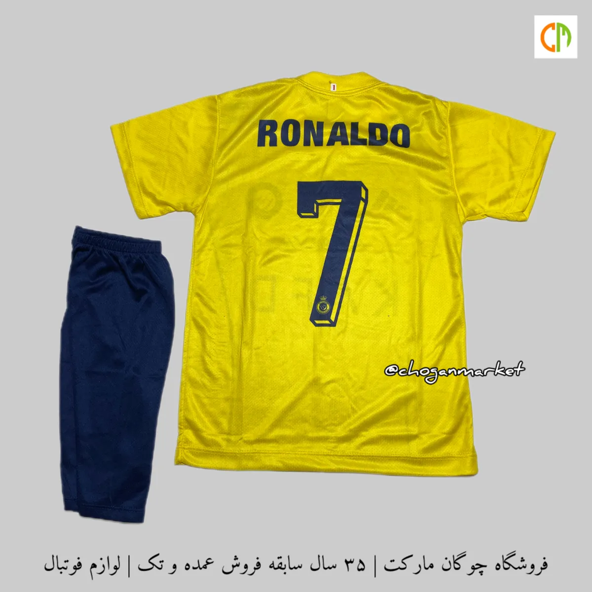 لباس بچه گانه اول النصر 2025/26 با اسم و شماره رونالدو | تولید ایران | از معتبرترین مغازه منیریه تهران با 35 سال سابقه فروش عمده و تک لوازم فوتبال